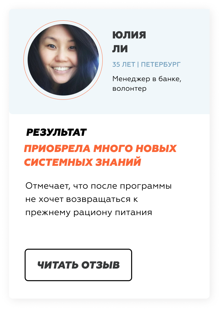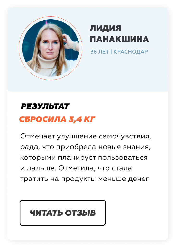 Результат:К окончанию второй недели почувствуете первые результаты: улучшится самочувствие, исчезнут неприятные ощущения в животе, если они были ранее, пропадет сонливость, вялость, станет больше энергии. С легкостью будете пить воду. Расставите по полочкам информацию о процессах, происходящих в организме. Встанут по местам пазлы из полученной информации. Сможете самостоятельно составлять меню на неделю.